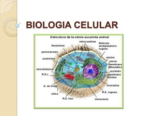La biología celular estudia las células, incluyendo su estructura, propiedades, funciones, organelos, interacción con el ambiente y ciclo vital. Con el microscopio óptico se pudieron observar por primera vez las células y sus detalles internos como el núcleo, mitocondrias y otros organelos. La biología celular se centra en comprender el funcionamiento de los sistemas celulares y sus estructuras a nivel molecular.