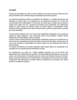La biometría se refiere a la medición y análisis de características físicas y de comportamiento únicas en los seres humanos para fines de identificación y autenticación. Algunas técnicas biométricas comunes incluyen el reconocimiento de iris, huellas dactilares, rostro y voz. Si bien la biometría ofrece altos niveles de seguridad, también plantea preocupaciones sobre la privacidad y el robo de identidad debido al riesgo de que los datos biométricos sean comprometidos o rob