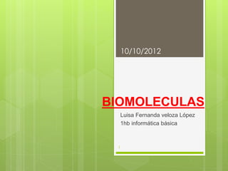 Este documento presenta información sobre biomoléculas como carbohidratos, lípidos, aminoácidos y proteínas. Explica que las biomoléculas son los componentes básicos de los seres vivos y están formados principalmente por carbono, hidrógeno, oxígeno y nitrógeno. Describe los carbohidratos como la principal fuente de energía y clasifica los lípidos en simples y complejos. Además, define los aminoácidos como los componentes de las proteínas y explica que existen 20 aminoácidos que forman parte