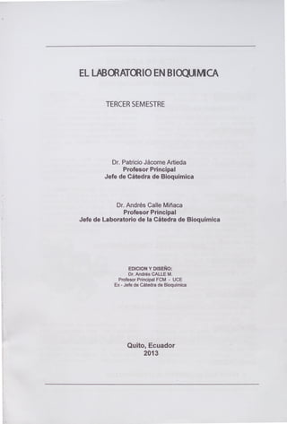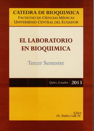 Este documento presenta información sobre la determinación de glucosa en el laboratorio de bioquímica de tercer semestre. Explica la introducción a los carbohidratos y su clasificación, así como aspectos del metabolismo de la glucosa como la absorción, el ingreso celular a través de la insulina, y la glucólisis. También describe las prácticas de laboratorio del tercer semestre que incluyen la determinación de glucosa, colesterol, proteínas y ácido úrico, así como los seminarios sobre temas relacionados a la glucosa y
