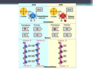Este documento trata sobre la bioquímica. Explica que la bioquímica estudia la composición química de los seres vivos y las reacciones que ocurren dentro de las células. Describe los principales bioelementos y biomoléculas como el agua, sales minerales, glúcidos, lípidos y proteínas. Explica la estructura, funciones y clasificación de estas moléculas orgánicas e inorgánicas que son fundamentales para la vida.