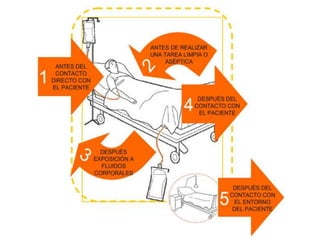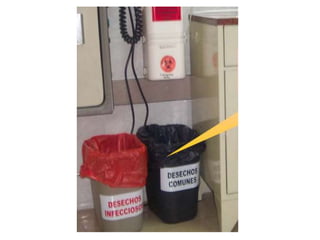 Este documento presenta conceptos básicos sobre bioseguridad, incluyendo definiciones de bioseguridad, exposición, agentes de riesgo biológico, principios de bioseguridad, lavado de manos, uso de guantes, mascarillas, gorros, botas y batas. También describe el manejo adecuado de objetos cortopunzantes y las características de los guardianes de seguridad para residuos peligrosos.