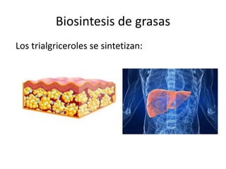 Los ácidos grasos son moléculas importantes que se usan en la síntesis de triacilgliceroles. El triacilgliceroles se sintetizan a partir de ácidos grasos o intermediarios de la glicólisis como el glicerol-fosfato. El glicerol también puede proceder de triacilgliceroles previamente hidrolizados.