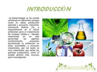 En Colombia se requiere mayor inversión del estado y el sector privado en investigación y aplicación de biotecnología ambiental, especialmente para el tratamiento de aguas residuales domésticas, industriales y del sector agropecuario. La biotecnología ofrece alternativas para minimizar el impacto ambiental negativo generado por procesos como el beneficio del café y el manejo de sus aguas residuales. Se necesitan seguir explorando el uso de microorganismos y procesos biotecnológicos para la biorremediación de contaminantes como el