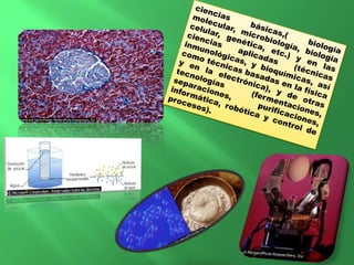 El documento resume la evolución de la biotecnología a través de la historia. Comenzó con el cultivo de plantas y domesticación de animales, y luego avanzó con el descubrimiento de la microbiología y genética. Más adelante, se desarrollaron técnicas como la ingeniería genética, que permitieron modificar organismos a nivel genético. Finalmente, la biotecnología se aplica a diversos sectores como la agricultura, ganadería, alimentación, salud y medio ambiente.