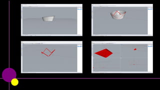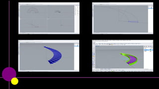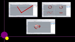 El documento describe diversas técnicas de modelado 3D como el barrido y la revolución, centrándose en la aplicación de estas técnicas para crear una cinta de Möbius. Se mencionan repetidamente las metodologías de barrido y revolución en el contexto del diseño y la geometría. Se destaca la combinación de estas técnicas para lograr formas complejas y únicas.