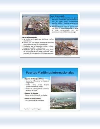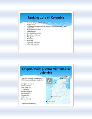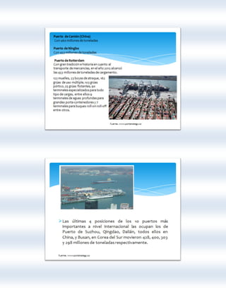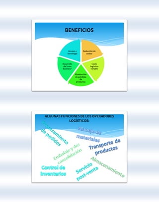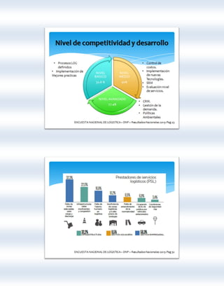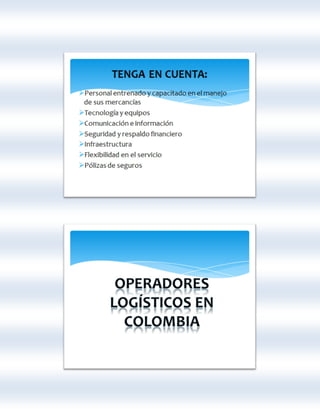 Este documento presenta definiciones breves de varios términos relacionados con la logística y el comercio internacional. Explica conceptos clave como negocio, comercio, mercadeo, negocios internacionales, comercio internacional, comercio exterior, tratado, acuerdo, convenio, internacionalización, mundialización, globalización, incoterms, exportación, importación, canales de distribución, competitividad, cadena de valor, contratos internacionales y transporte internacional. También incluye definiciones de siglas
