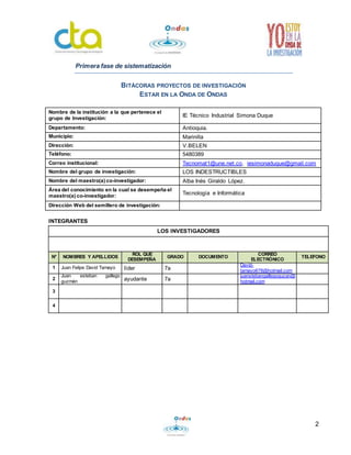 Este documento presenta las bitácoras de un grupo de estudiantes que llevan a cabo un proyecto de investigación sobre las capacidades del cerebro humano. En la primera bitácora, el grupo describe su conformación y objetivos. En la segunda, plantean preguntas iniciales y definen su pregunta de investigación. En la tercera, describen el problema de investigación y sus alcances.