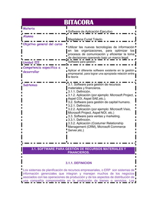 El documento presenta información sobre el software Aspel-COI, diseñado para la gestión contable de una empresa. Aspel-COI permite capturar, procesar y mantener actualizada la información contable de forma segura, así como controlar los activos fijos mediante cálculos de depreciación. El software incluye módulos para contabilidad, inventario de activos, elaboración de reportes y estados financieros.