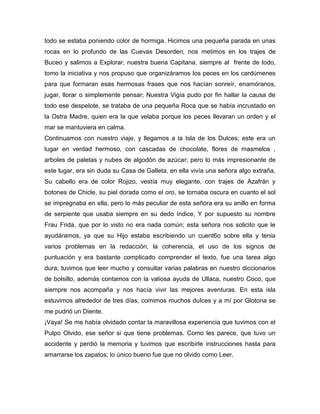 El documento presenta una narración en la que una tripulación de aventureros realiza un viaje literario por diferentes centros y periodos literarios de Latinoamérica. La tripulación visita la literatura precolombina, la literatura del descubrimiento y la colonia, el neoclasicismo, y finalmente aprende a plantear un problema de investigación.