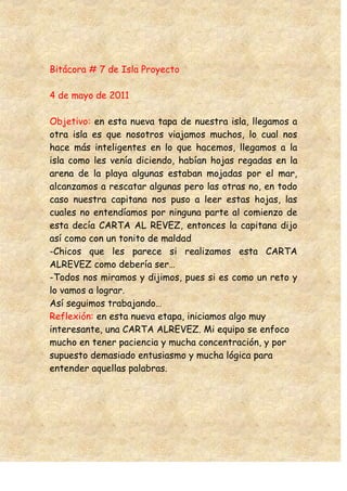 La tripulación llegó a una nueva isla y encontró hojas esparcidas en la playa con una "CARTA AL REVEZ". La capitana retó a la tripulación a descifrar la carta al revés. El equipo trabajó con paciencia, concentración, entusiasmo y lógica para entender las palabras de la carta al revés.