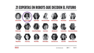 El documento presenta seis proyectos de robots desarrollados por mujeres para diferentes aplicaciones como silla de ruedas automatizada, robot quirúrgico, robots de limpieza industrial, robot educativo, y robot semáforo para mejorar la seguridad vial en África.