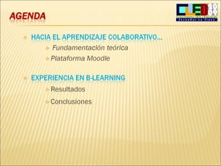 El documento habla sobre la necesidad de cambiar los paradigmas de la educación ante los avances tecnológicos e implementar el aprendizaje mixto o blended learning como soporte a la enseñanza presencial. Menciona que el aprendizaje debe ser constructivo y colaborativo usando plataformas como Moodle, y que los roles del profesor y estudiantes deben cambiar a ser más activos y participativos.
