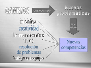 Este documento discute el uso de la tecnología en la educación. Propone que los educadores deben ayudar a los estudiantes a aprender de manera autónoma en esta era de cambio constante, utilizando herramientas TIC, aprendizaje colaborativo y aplicando los conocimientos al mundo real. También describe varios proyectos educativos que combinan el aprendizaje en el aula con entornos virtuales, como e-Learning Matemático y Aula Digital, para fomentar un proceso continuo de enseñanza y aprendiz