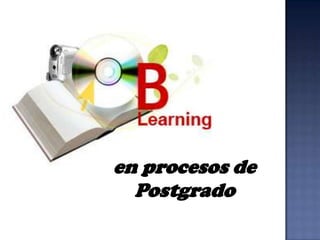 El documento describe el programa de B-Learning (aprendizaje combinado) para posgrados. Explica que el B-Learning integra la educación presencial y virtual para potenciar el aprendizaje significativo. El estudiante puede acceder a contenidos en cualquier momento y trabajar a su propio ritmo, mientras que el docente adopta un rol de facilitador para fomentar la participación y autonomía del estudiante.