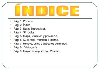 Este documento resume la información básica sobre Bélgica. Explica que Bélgica es un estado federal dividido en tres regiones, con Bruselas como su capital bilingüe. Proporciona detalles sobre su población, superficie, moneda, idiomas oficiales, relieve y clima. También menciona algunos aspectos culturales notables de Bélgica como su chocolate, mejillones y cerveza.