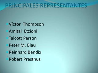 El documento trata sobre el origen y características de la teoría estructuralista en las organizaciones. La teoría surgió a finales de los años 1950 como una posición más amplia que integra aspectos de la teoría clásica y de las relaciones humanas. El estructuralismo se enfoca en las estructuras formales e informales de la organización, las recompensas materiales y sociales, los diferentes niveles jerárquicos y el análisis entre organizaciones.