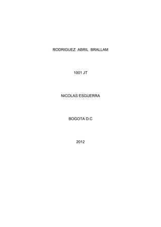 El documento contiene información sobre una persona llamada RODRIGUEZ ABRIL BRALLAM con dirección 1001 JT y otra persona llamada NICOLAS ESGUERRA con dirección BOGOTA D.C en el año 2012.