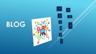 Un blog es un sitio web en el que uno o más autores publican artículos de manera cronológica. Los autores tienen libertad para publicar lo que deseen y los lectores pueden comentar las publicaciones. Los blogs sirven para compartir ideas u opiniones sobre diversos temas y su nombre viene de la combinación de las palabras "web" y "log", que significa diario en inglés.