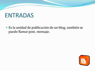 El documento describe cómo añadir gadgets y videos a entradas de blog. Explica que los gadgets son dispositivos pequeños con funciones específicas y que los ejemplos incluyen relojes y calculadoras. También detalla dos métodos para insertar videos de YouTube en una entrada de blog, ya sea añadiendo el código HTML o compartiendo directamente el video desde YouTube.