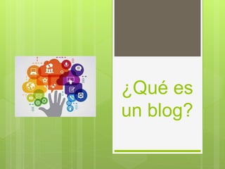 El documento define un blog como un sitio web que recopila cronológicamente artículos de uno o más autores, donde los lectores pueden comentar y establecer un diálogo. Explica cómo hacer un blog eligiendo una plataforma, personalizándola y escribiendo la primera publicación. Finalmente, detalla los diferentes propósitos de un blog, como diarios personales, opinar, enseñar, tratar temas tecnológicos, culturales, educativos, artísticos o recreativos, y su uso por empresas.