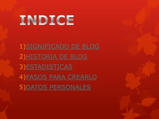 El documento habla sobre los blogs, incluyendo su historia, estadísticas y pasos para crear uno. Explica que los blogs evolucionaron de diarios en línea personales y que Justin Hall es reconocido como uno de los primeros bloggers. Además, describe que actualmente existen diversas herramientas basadas en navegadores para publicar blogs de manera fácil.