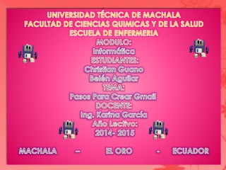 El documento proporciona instrucciones para crear un blog en Blogger.com en tres pasos: 1) registrarse en Blogger.com, 2) completar los formularios de registro y configuración inicial, y 3) escribir y publicar la primera entrada del blog. También explica cómo instalar una plantilla personalizada en un blog de Blogger mediante la carga del archivo de plantilla o pegando el código de la plantilla directamente.