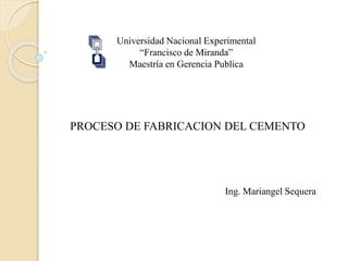 El proceso de fabricación del cemento consta de 10 etapas: 1) explotación de la materia prima de la cantera, 2) trituración para reducir el tamaño de las materias primas, 3) pre-homogeneización para reducir la variabilidad química, 4) molienda y secado del crudo, 5) homogeneización del crudo, 6) precalentamiento y precalcinación para calentar el material hasta 870°C, 7) producción del clinker en un horno rotatorio a 1200°C, 8) enfriamiento del clinker hasta