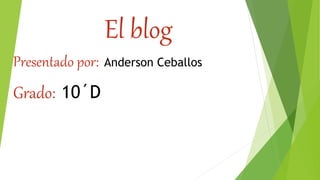 Este documento describe qué es un blog, sus características y tipos principales. Un blog es un sitio web que funciona como un diario personal en línea donde el autor publica contenido de manera frecuente para ser comentado por lectores. Los blogs permiten comentarios, enlaces a otras páginas, y pueden incluir fotos y videos. Existen blogs personales, de microblogging, corporativos y de organizaciones.