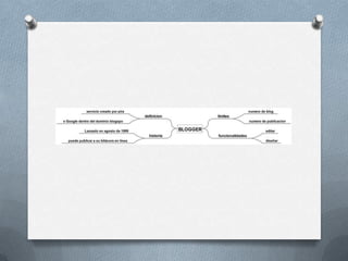 Blogger es un servicio gratuito creado en 1999 que permite crear y publicar blogs en línea sin necesidad de escribir código. Ofrece funciones como editor WYSIWYG, plantillas personalizables, publicación en dominios propios y acceso público o privado. También permite integrarse con Google AdSense, Amazon Associates y Word para monetizar el blog o publicar desde otras plataformas.