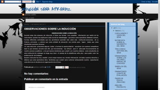 El documento habla sobre la creación de blogs. Explica que un blog es un sitio web que recopila artículos de forma cronológica y permite comentarios. Los objetivos son comprender la potencialidad educativa de los blogs y crear un blog personal sobre los temas de la semana de inducción. También describe las utilidades de los blogs en los campos personal, académico y profesional.