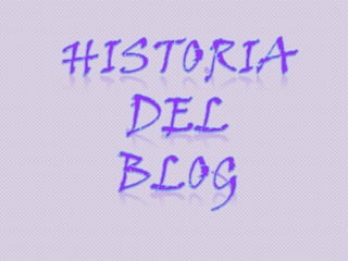 Este documento describe la historia y evolución de los blogs. Comienza explicando que el primer blog fue creado en 1994 por Justin Hall y que en 1997 Jorn Barger acuñó el término "weblog". Luego resume los principales hitos en el desarrollo de plataformas de blogs como Blogger y WordPress y el crecimiento exponencial de su popularidad hasta la actualidad.