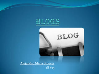 Este documento define los blogs, explica sus características y diferencias con páginas web y foros. Los blogs son sitios web actualizados periódicamente que recopilan artículos de uno o más autores en orden cronológico inverso. Permiten publicar contenido de forma fácil y gratuita. Sirven para comunicar e informar a otros sobre temas específicos.
