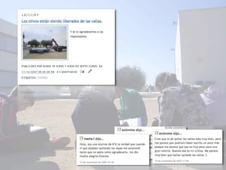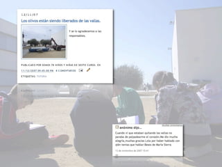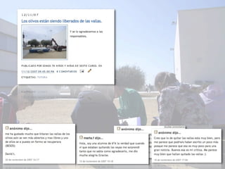 El documento habla sobre los edublogs y su uso en entornos educativos. Explica que un edublog es un blog que se usa con fines educativos, tanto por profesores como estudiantes. Describe los diferentes tipos de blogs, incluyendo blogs del profesorado, blogs de estudiantes y blogs de aula. También discute los posibles usos y beneficios de los blogs de aula, como abrir el aula al mundo, integrar a las familias y dar salida a las habilidades y inquietudes de los estudiantes.