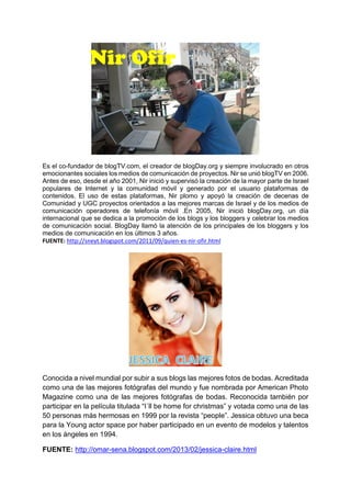 Nir Ofir es el co-fundador de blogTV.com y creador de blogDay.org. Desde 2001 ha iniciado y supervisado la creación de plataformas de contenido generado por usuarios e Internet en Israel. En 2005 comenzó blogDay.org, un día dedicado a promover blogs y bloggers.