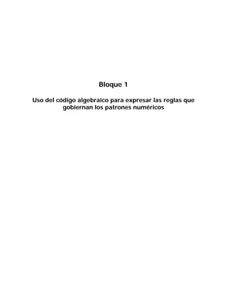 Bloque 1 Uso delcódigo algebraico para expresar las reglas que gobiernan los patrones numéricos