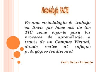 Es una metodologíade trabajo en línea que hace uso de las TIC como soporte para los procesos de aprendizaje a través de un Campus Virtual, dando realce al enfoque pedagógico tradicional. Pedro Xavier Camacho