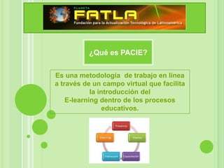 PACIE es una metodología de trabajo en línea que facilita la introducción del e-learning en los procesos educativos a través de un campo virtual. El bloque académico forma parte de la estructura ideal de un entorno virtual de aprendizaje y contiene información y contenido sobre la asignatura a través de documentos o enlaces. El bloque académico incluye secciones de exposición, rebote, construcción y comprobación.