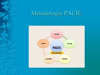 Este documento describe la metodología PACIE para organizar cursos virtuales. Explica que el bloque académico tiene la función de presentar la información y actividades de la asignatura y busca la interacción del estudiante con el material y su aprendizaje. Se divide en cuatro secciones: exposición, donde se encuentra el contenido; rebote, para revisar la comprensión; construcción, para el análisis y discusión; y comprobación, para verificar la adquisición de conocimientos.