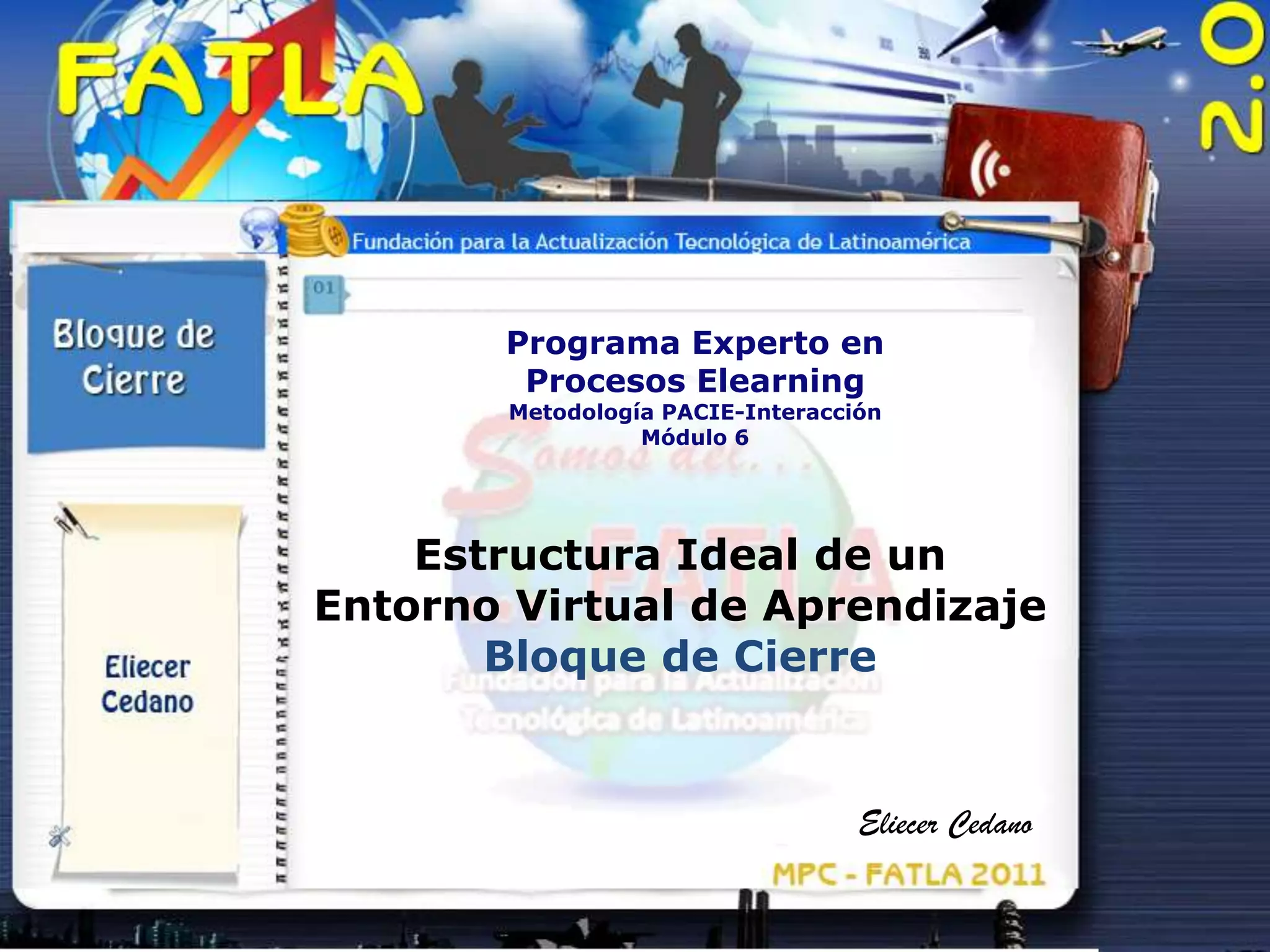 La metodología PACIE permite el uso de las TIC como herramientas de apoyo en el aprendizaje y autoaprendizaje, mejorando el esquema pedagógico. Un entorno virtual de aprendizaje ideal tiene una estructura con bloques para la información, desarrollo, evaluación, interacción y retroalimentación. El bloque de cierre permite la negociación, oportunidades de recuperación, retroalimentación y motivación hacia otros módulos, impulsando la graduación.