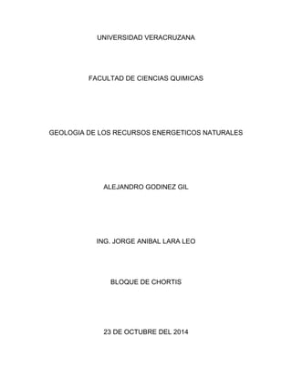 Este documento proporciona información sobre la geología del Bloque de Chortís, ubicado en el sudeste de Guatemala, El Salvador y Honduras. Describe las características del basamento rocoso del bloque, incluyendo rocas metamórficas antiguas. También resume la estratigrafía de las secuencias sedimentarias mesozoicas y volcanismo terciario que cubren el basamento, así como la historia tectónica del bloque desde el Precámbrico hasta el Cenozoico.