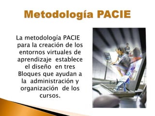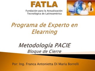 La metodología PACIE para crear entornos virtuales de aprendizaje consta de tres bloques, incluyendo el Bloque de Cierre. El Bloque de Cierre proporciona una sesión de negociación para mejorar las evaluaciones y despedirse, y una sesión de retroalimentación para evaluar la interacción entre el tutor y los participantes. El Bloque de Cierre ayuda a cerrar el curso evaluando el progreso y la experiencia de los participantes.