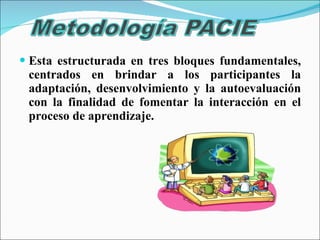 El documento describe la estructura de un curso en línea que consta de tres bloques principales: adaptación, desarrollo y autoevaluación. El bloque de cierre contiene dos secciones: negociación entre la comunidad de aprendizaje y retroalimentación didáctica, pedagógica y académica. El bloque de cierre permite verificar el cumplimiento de los estándares y logros de los participantes y corregir procesos relacionados con el curso para futuras ediciones.