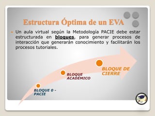 El bloque de cierre de un curso en la Metodología PACIE contiene secciones para la negociación de evaluaciones perdidas, retroalimentación del proceso de enseñanza-aprendizaje, foros de despedida para que los estudiantes expresen sus experiencias, y la graduación de los estudiantes al siguiente nivel.