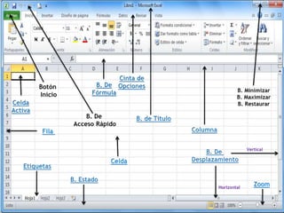 La hoja de cálculo Excel permite realizar cálculos matemáticos, estadísticos y financieros de manera rápida y precisa a través de una estructura tabular de filas y columnas. Ofrece funciones como gráficos, impresión de datos, y cálculos automáticos que ayudan a organizar y analizar información de forma eficiente para la toma de decisiones.