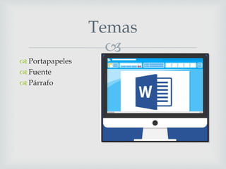 Este documento describe las diferentes herramientas de formato de texto en un procesador de texto, incluyendo opciones para copiar, cortar y pegar texto, cambiar el estilo, tamaño y color de fuente, agregar viñetas y numeración a listas, y ajustar el espaciado y alineación de párrafos.