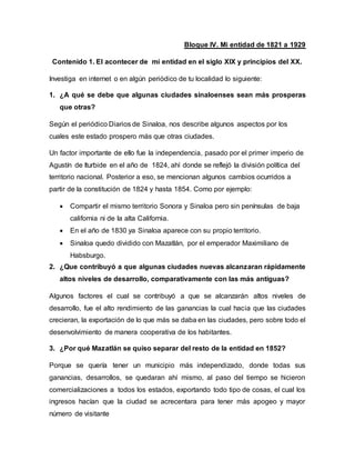 Este documento presenta información sobre una clase de estudiantes de tercer grado en la Escuela Normal Experimental de El Fuerte "Prof. Miguel Castillo Cruz" Extensión Mazatlán. El documento incluye detalles sobre la asignatura, los integrantes de la clase, la fecha y el titular de la asignatura. También presenta contenidos sobre la vida cotidiana en Sinaloa durante el Porfiriato y la Revolución Mexicana.