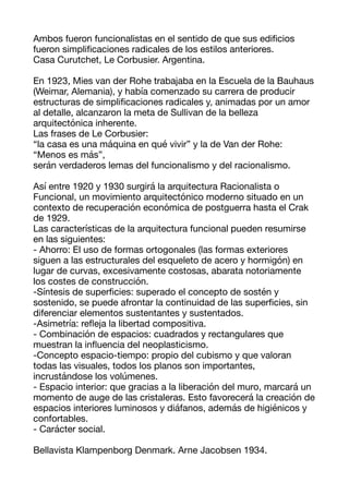 El documento describe las características y tendencias arquitectónicas de las décadas de 1940 y 1950, incluyendo el funcionalismo y racionalismo de Mies van der Rohe y Le Corbusier, la Bauhaus y su influencia, y el organicismo de Frank Lloyd Wright. También discute el brutalismo posterior a la Segunda Guerra Mundial y el uso del hormigón en bruto.