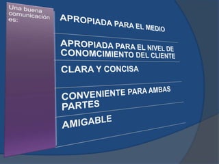 El documento argumenta que enfocarse en satisfacer las necesidades reales de los clientes asegurará resultados financieros positivos. Orientar las operaciones hacia la obtención de conceptos clave de ventas, mejorar procesos de ventas y satisfacer al cliente mediante herramientas de perfilación de mercados permitirá posicionarse exitosamente.