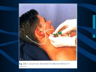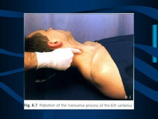 Este documento describe el ganglio estrellado y el procedimiento de bloqueo del mismo. Explica que el ganglio estrellado se encuentra a nivel de C7-T1 y es la fusión del último ganglio cervical y el primero torácico. Luego detalla la técnica de bloqueo del ganglio estrellado a través de un abordaje anterior paratraqueal, los posibles efectos y complicaciones. Finalmente, resume las indicaciones y contraindicaciones del bloqueo de este ganglio.